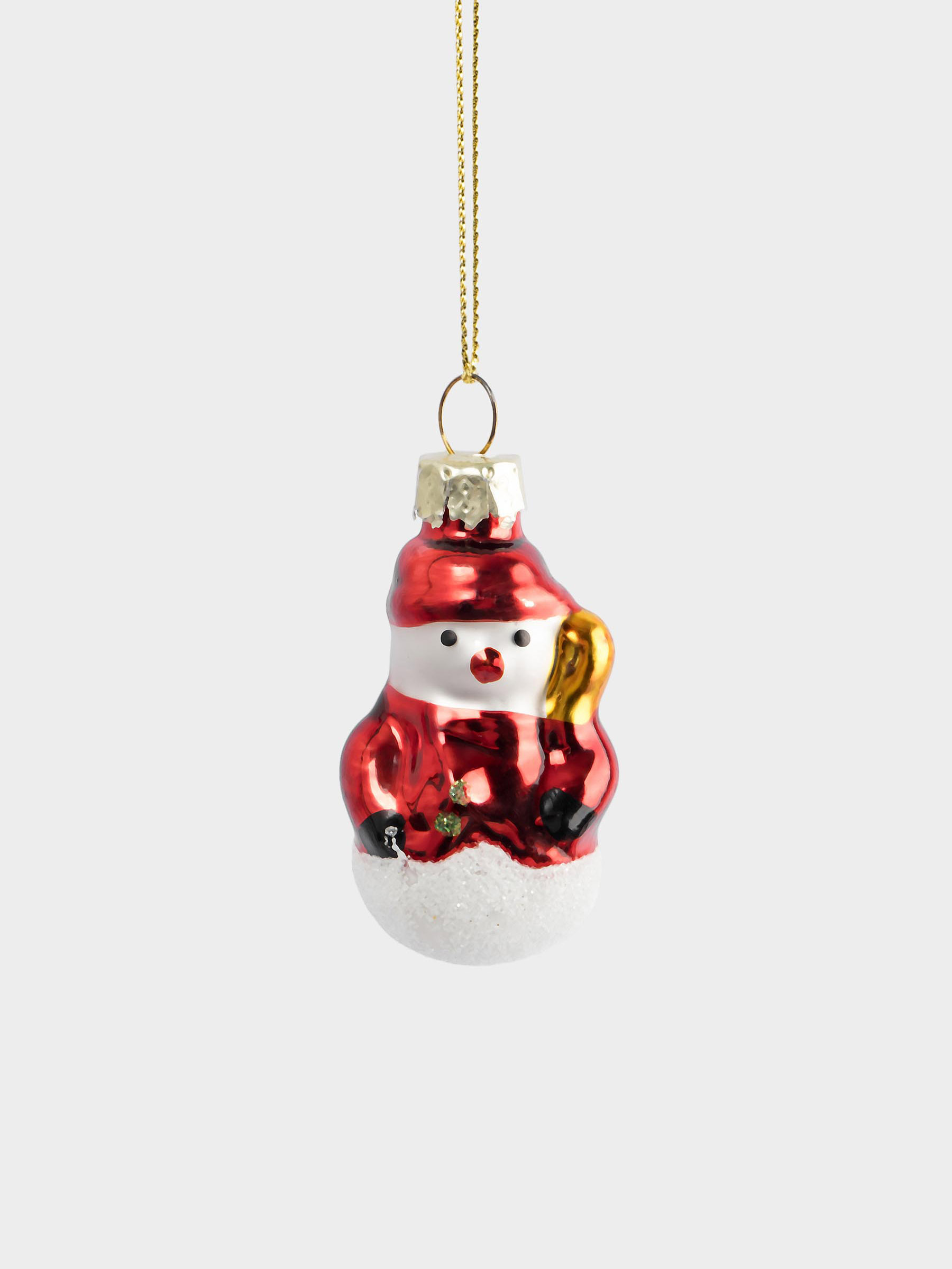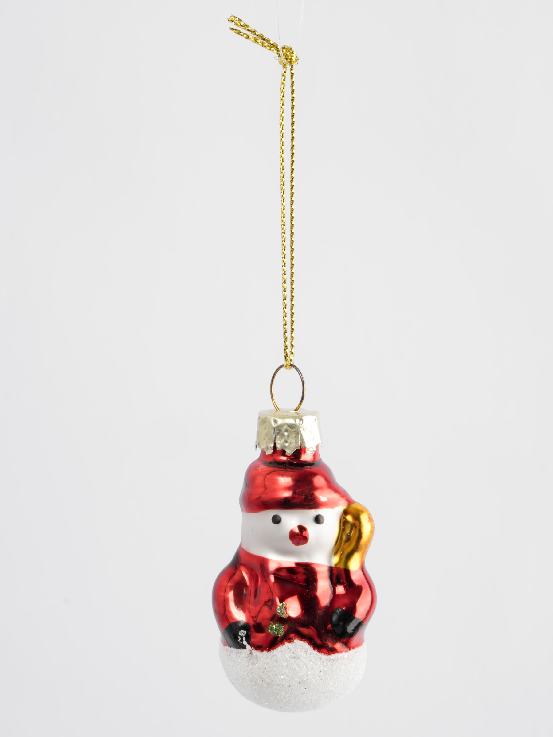 Игрушка елочная, 4 см, стекло, красная, Снеговик, New year