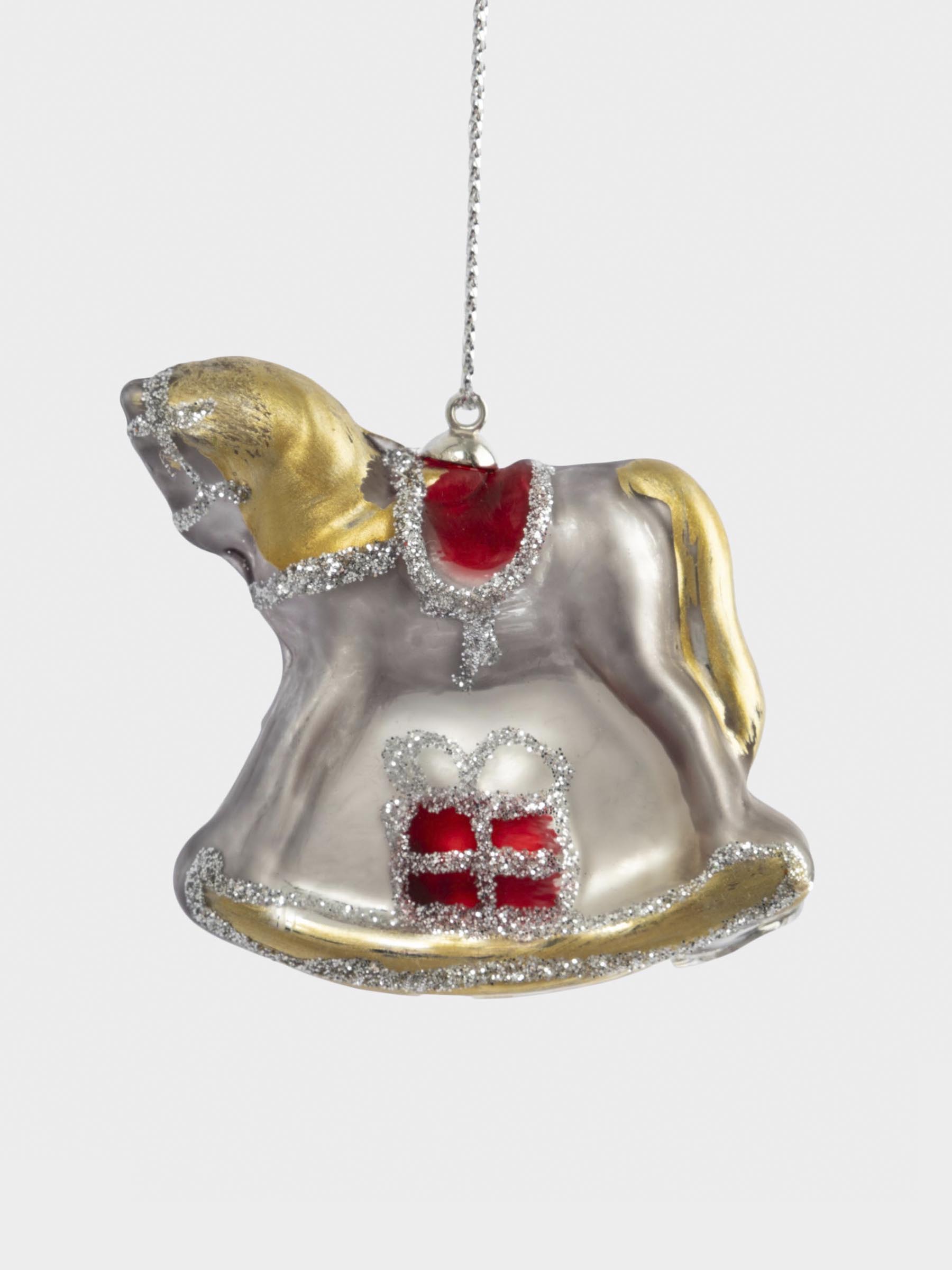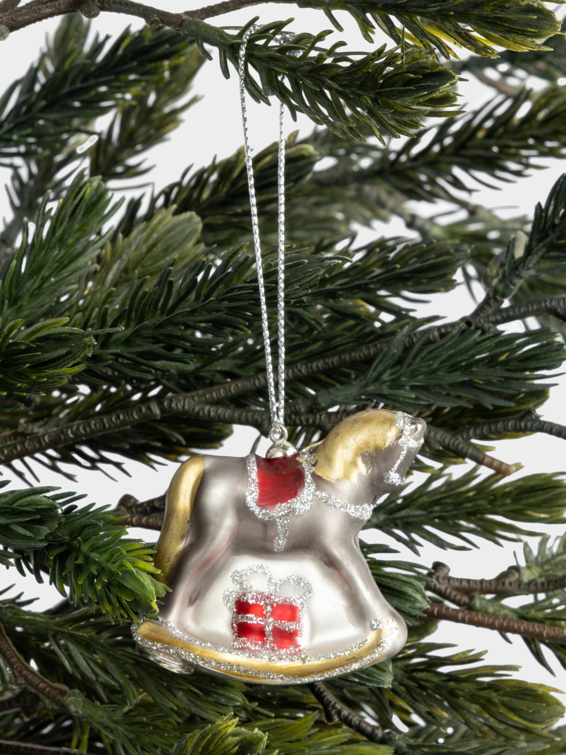 Игрушка елочная, 4 см, стекло, серебристая, Лошадка-качалка, Bright horse