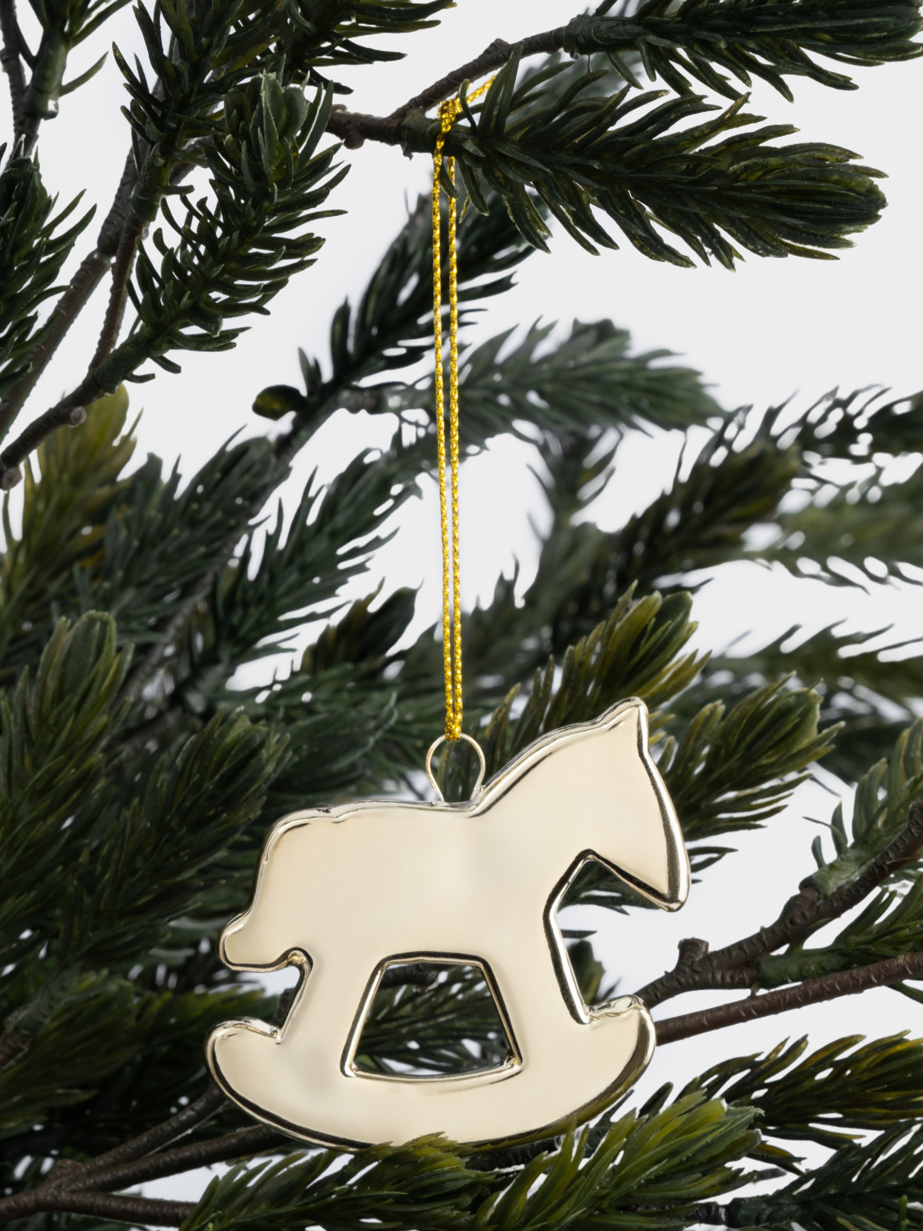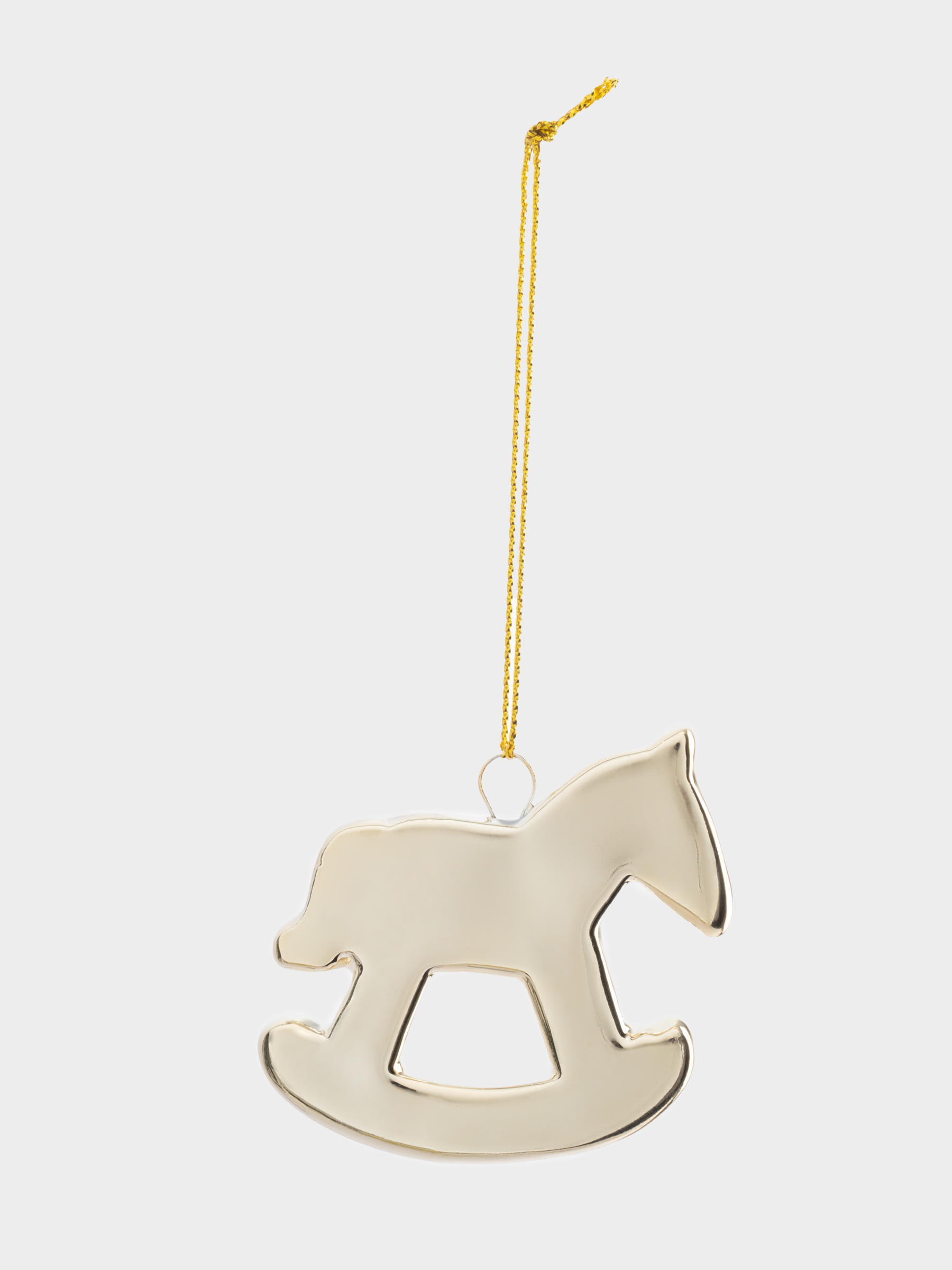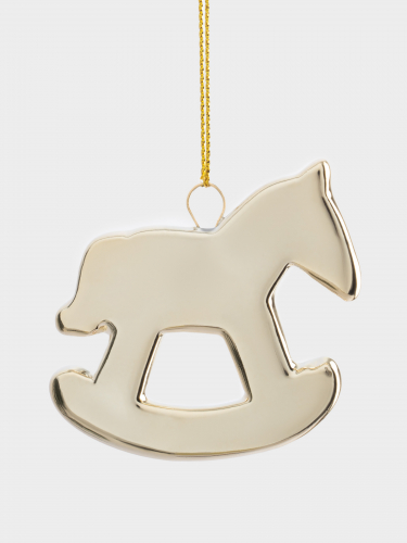 Игрушка елочная, 6 см, фарфор P, золотистая, Лошадка-качалка, New year