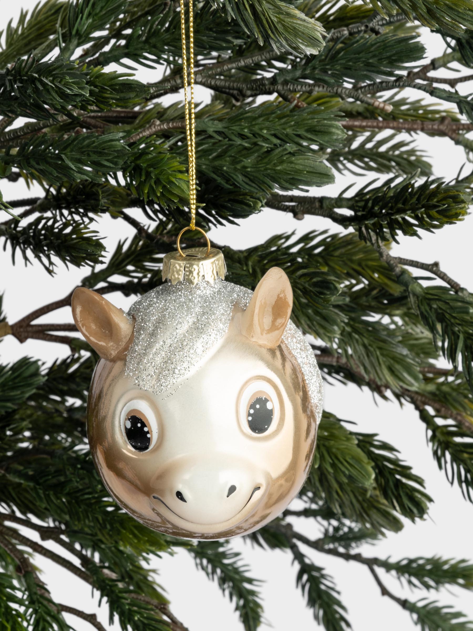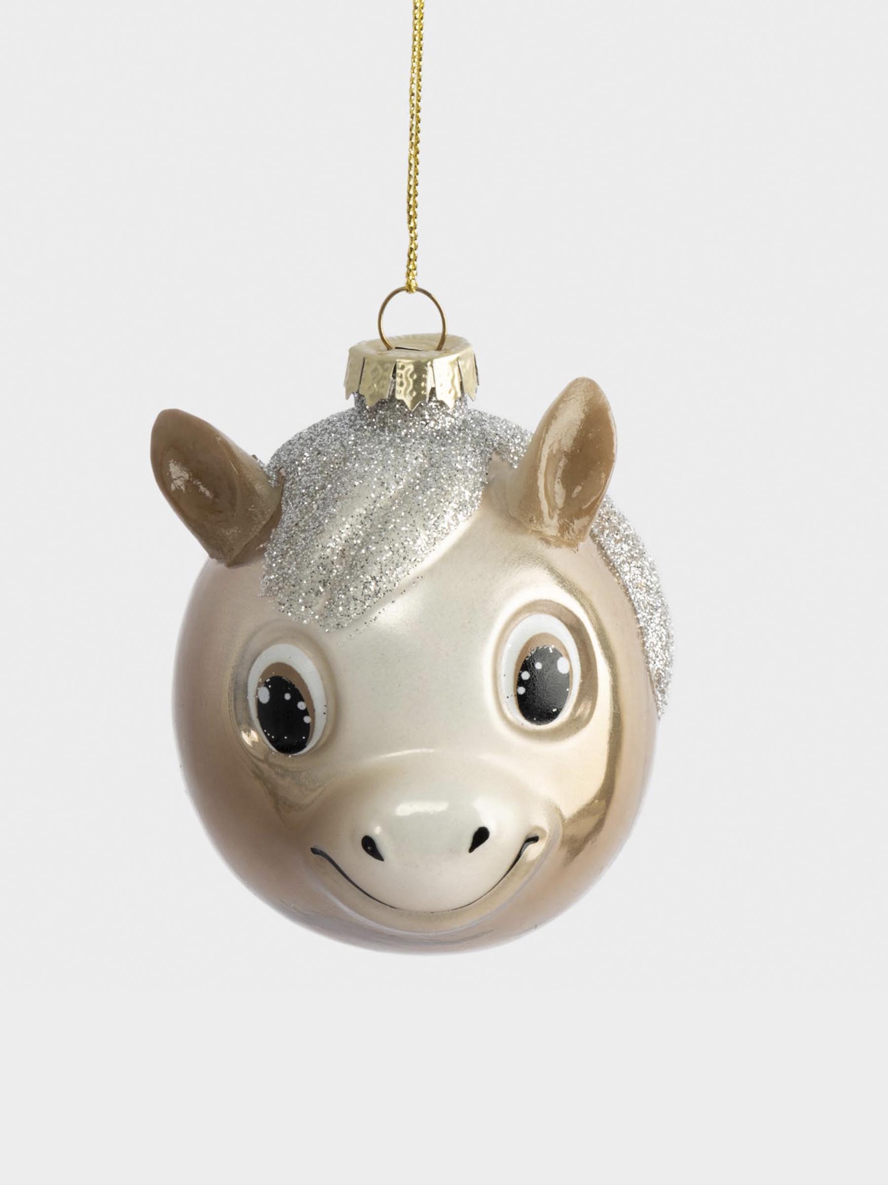 Игрушка елочная, 7x8 см, стекло, бежевая, Лошадка с блестящей гривой, New year