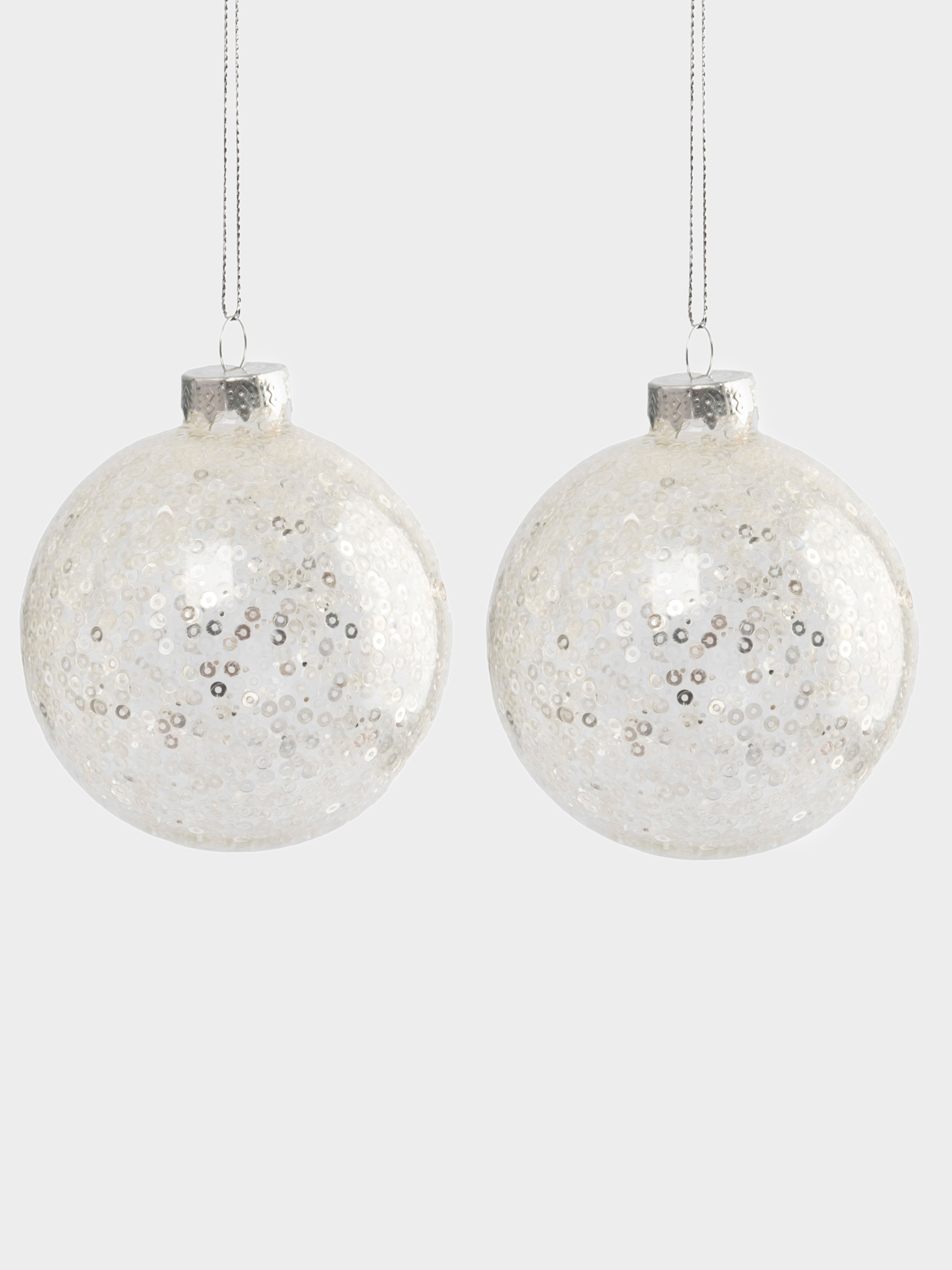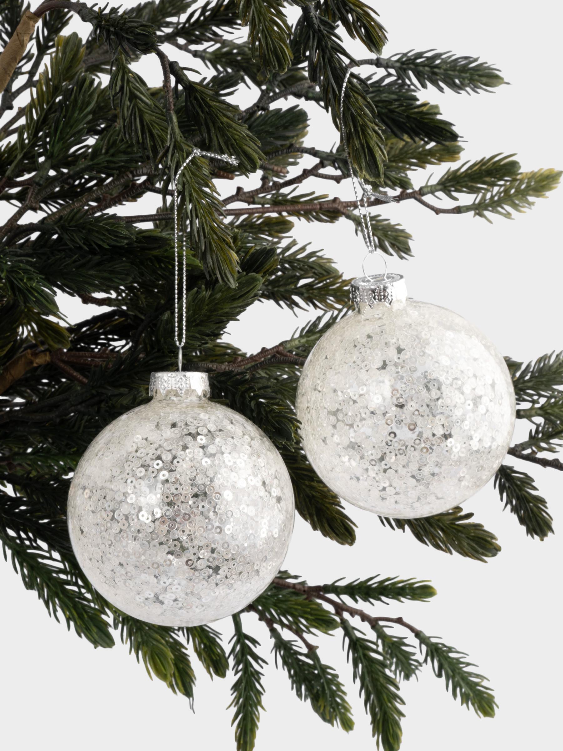 Игрушка елочная, 2 шт. Размер: 8 см. Материал: стекло, пайетки. Рекомендации по уходу: протирать мягкой сухой тканью. Беречь от механических повреждений.