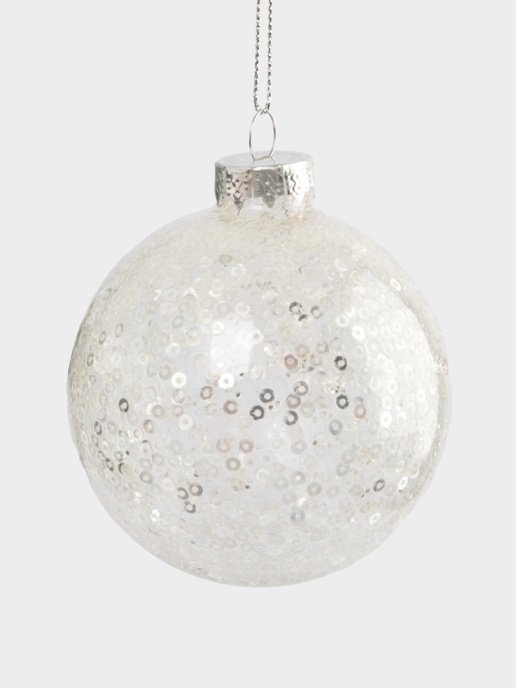 Игрушка елочная, 8 см, 2 шт, стекло/пайетки, серебристая, Шар с узором, New year