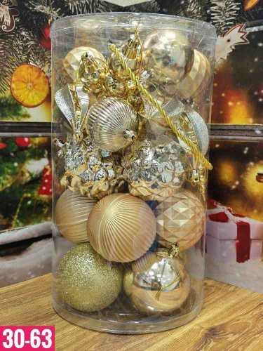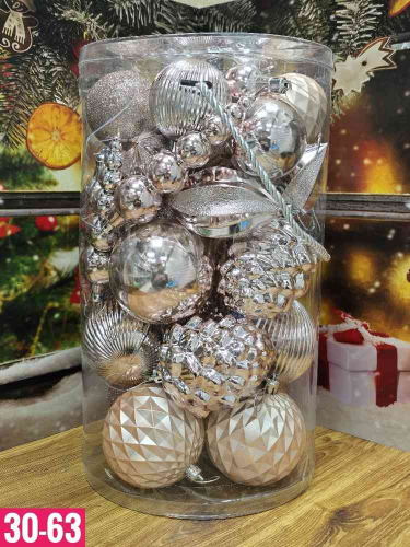 Игрушки для елки, пластик Размер 15 см - 4 шт 9 см - 10шт 8 см - 8 шт 6 см.- 8 шт в наборе 30 шт