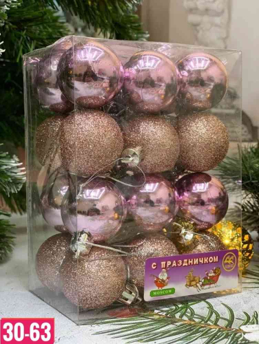 Игрушки для елки, пластик Размер: 4см Набор 24шт