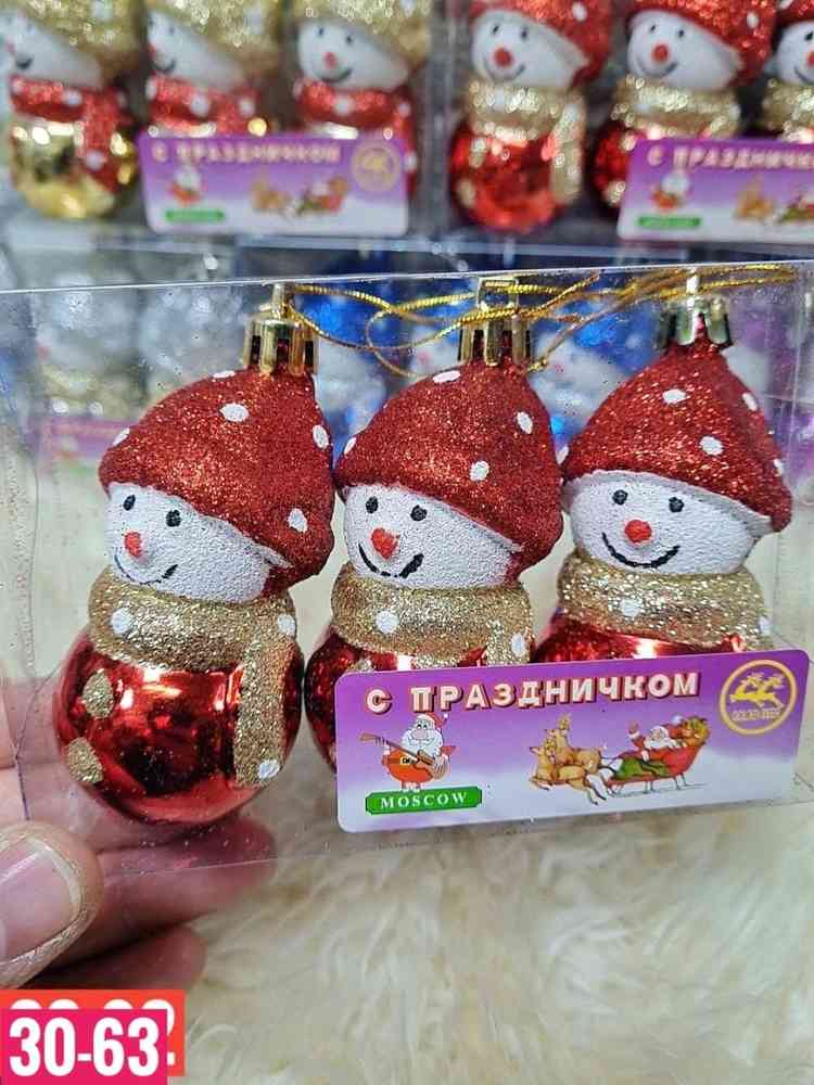 Игрушки для елки, пластик Размер 8см набор 3шт