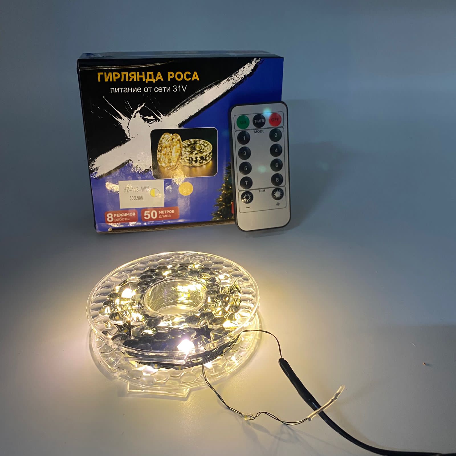 Гирлянда Роса 50 м на катушке зеленый провод (арт. HZ-113)