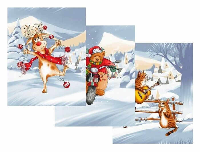 К-т полотенец "Новогодние каникулы" 50*60 см. - 3 шт. вафля хлопок 100%