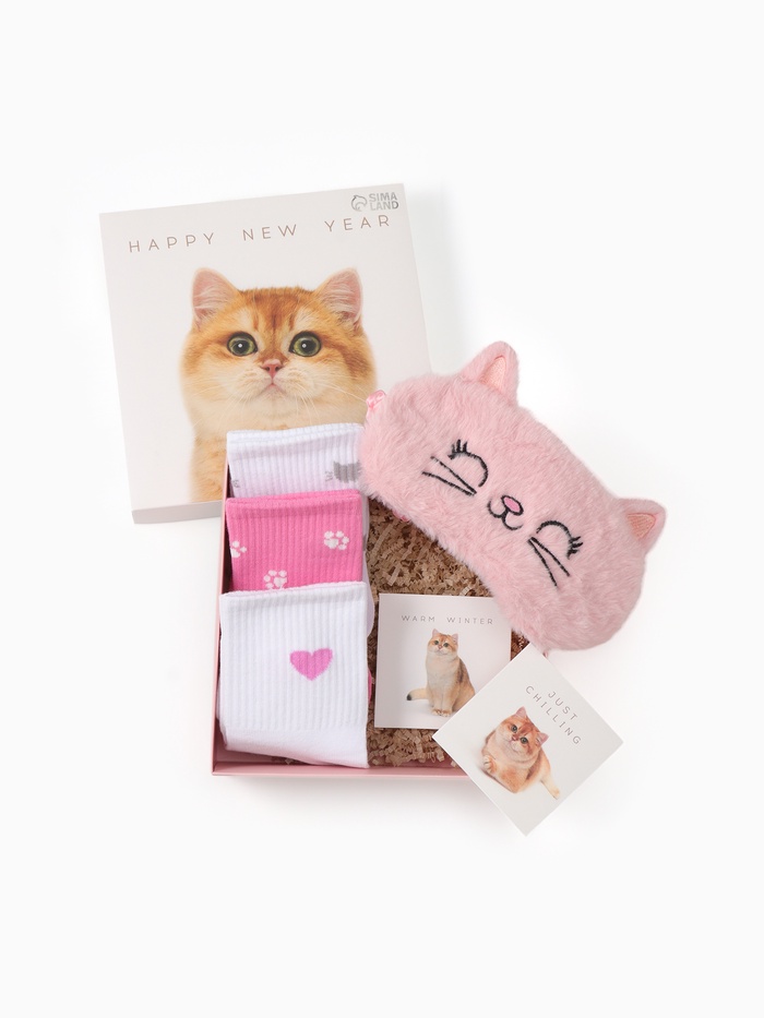 Набор новогодний подарочный KAFTAN «Киса», маска, носки размер 36-39 (23-25 см), открытка 2 шт.