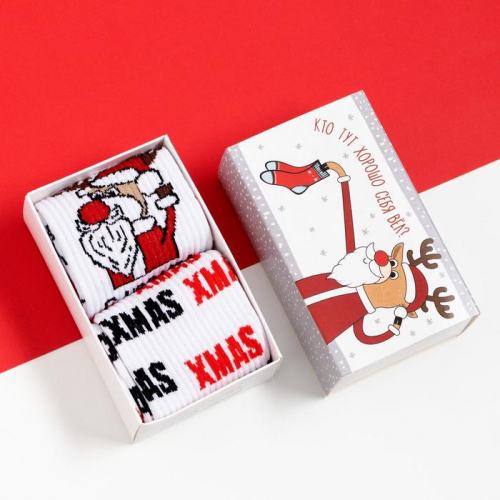 Новогодний набор мужских носков KAFTAN с оленями — создайте праздничное настроение с помощью стильного аксессуара. Тематический принт с северными оленями напоминает о приближении самого волшебного времени года.