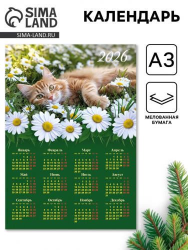 Календарь 2026 «Кот в цветах», А3