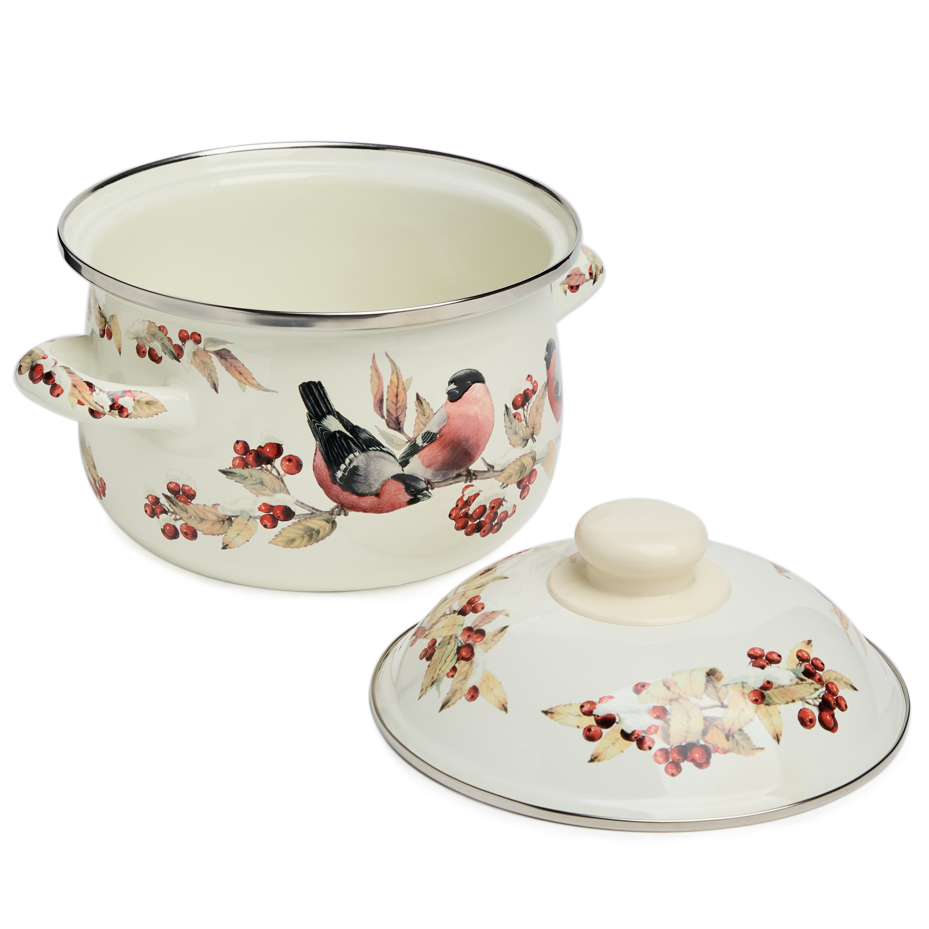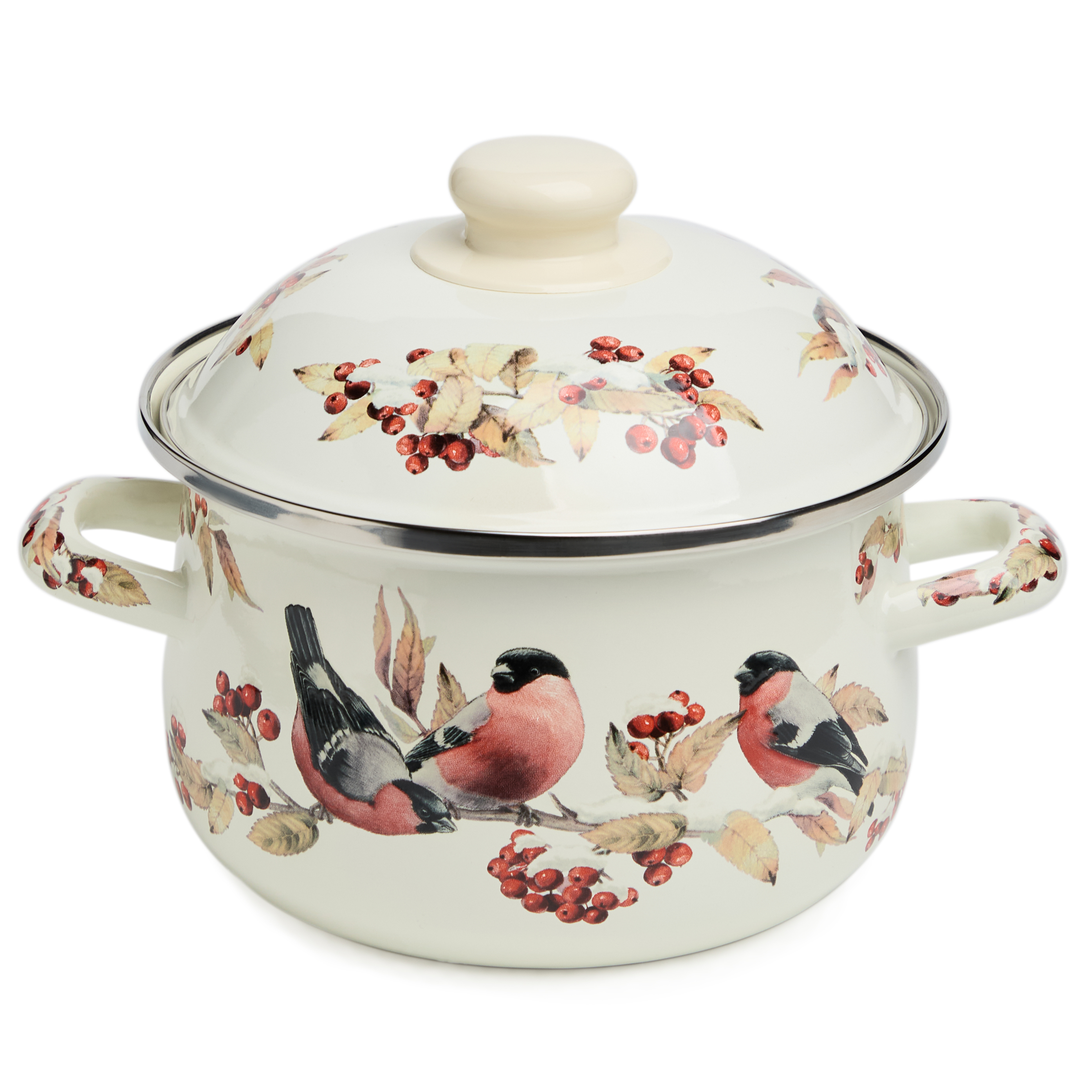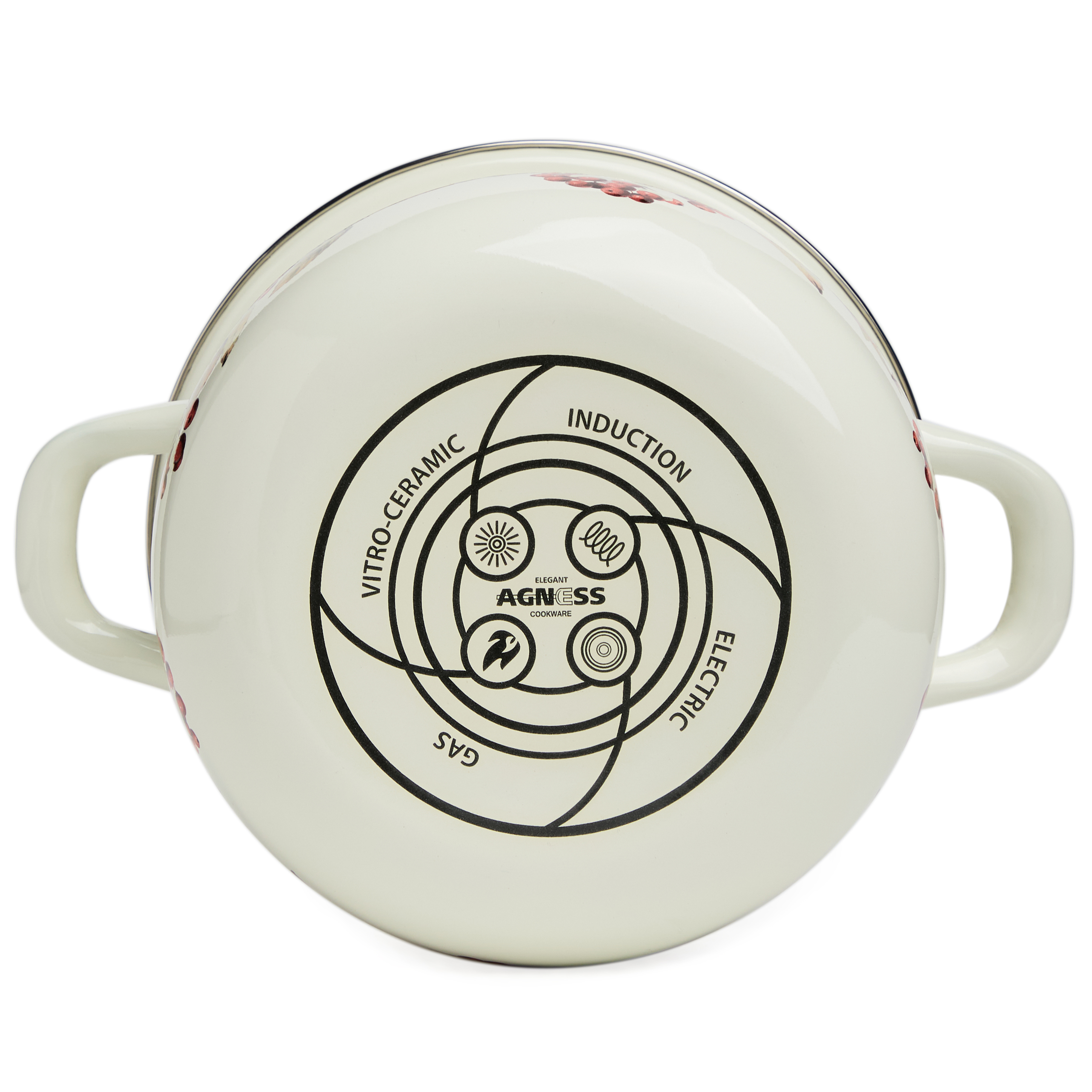 КАСТРЮЛЯ AGNESS ЭМАЛИРОВАННАЯ С ЭМАЛ.КРЫШКОЙ СЕРИЯ "СНЕГИРИ", 2.0 Л, 18*11 СМ