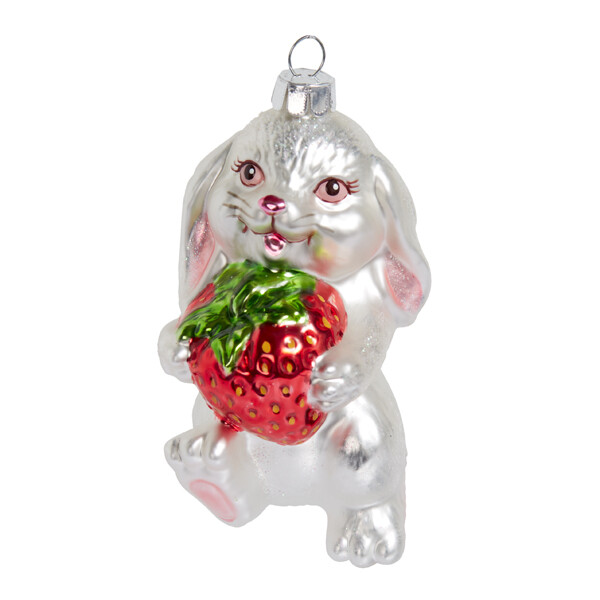 Кролик белый с клубникой (стекло) 5,7х5х10 см