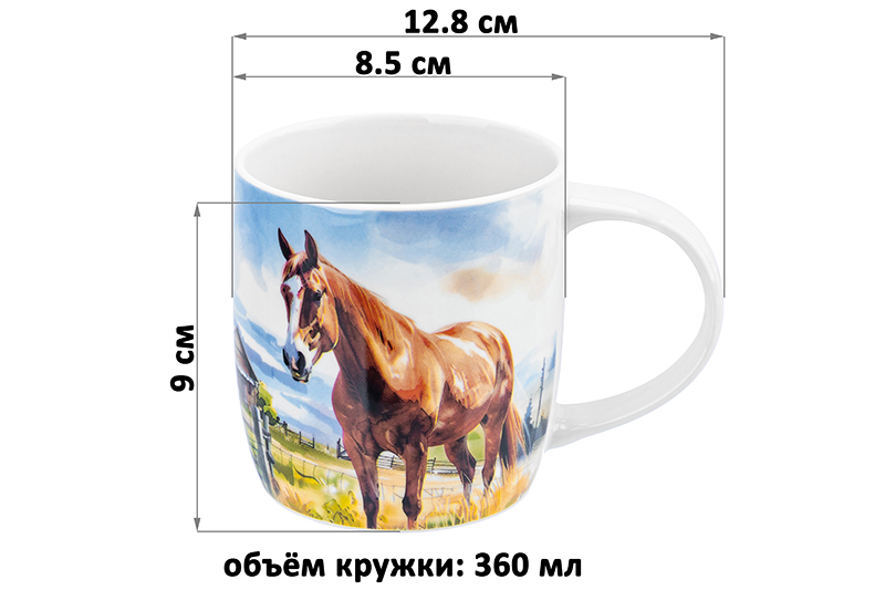 Кружка 360 мл 12,8*8,5*9 см "Лошадь" NEW BONE CHINA