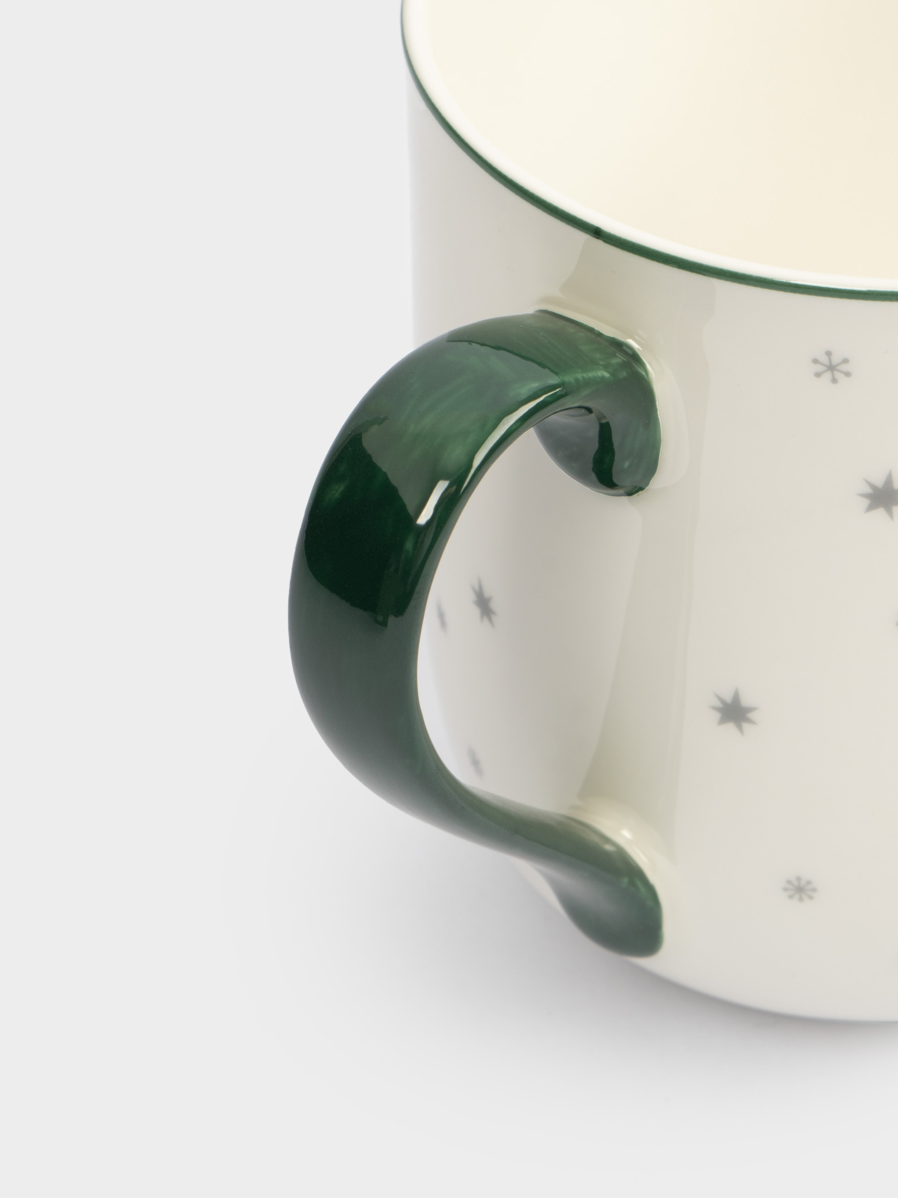 Кружка, 450 мл, фарфор F, бело-зеленая, Нарядная елка, New year