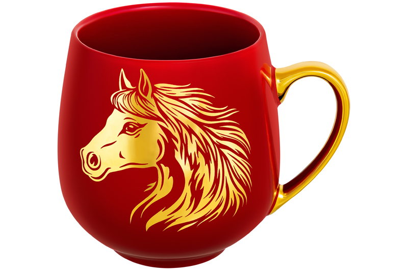 Кружка 530 мл 13,5*10,5*10,7 см "Лошадь" золотая на красном, фарфор