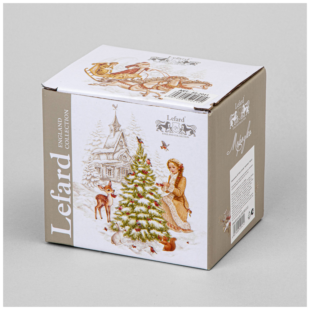ТМ LEFARD эксклюзивная коллекция "Морозко" создана по мотивам любимой одноименной новогодней сказки, на которой выросли несколько поколений маленьких зрителей. Всем близка история доброй и красивой девушки Настеньки, которую злая мачеха отправила в зимний лес на верную погибель. Детальные композиции, тонкие линии, высокое качество печати на тонкостенном белоснежном фарфоре превращает изделия в ожившие сюжеты. Разнообразие посуды и предметов сервировки добавят волшебства и красок в Ваш дом и порадует всех тех, кто сохранил в душе детскую радость и предвкушение чуда в самый ожидаемый праздник в году. Оригинальная упаковка. Прекрасный подарок. Вся продукция сертифицирована и безопасна для контакта с пищевыми продуктами. Можно использовать в СВЧ, не рекомендуется мыть в посудомоечных машинах во избежание повреждения золотой отводки (деколи) на изделиях.