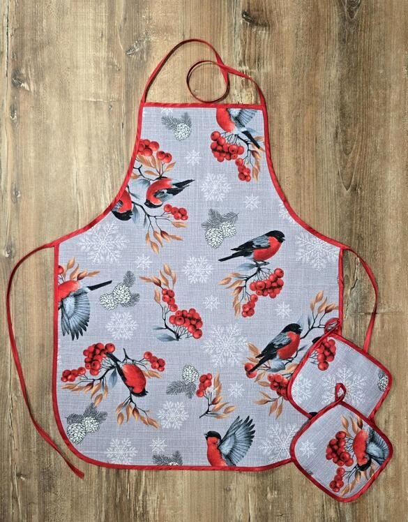 Кухонный набор "Снегири и рябина" 3 пр. рогожка хлопок 100%