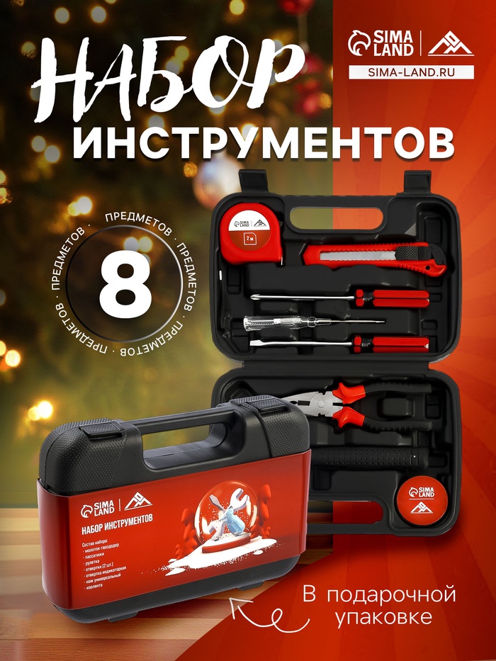 Новогодний подарок для домашнего мастера! Подарочный набор инструментов «Новый год» на 8 предметов в кейсе — это практичный комплект для бытового ремонта и мелких работ. Инструменты собраны в тематическом кейсе с праздничным оформлением.