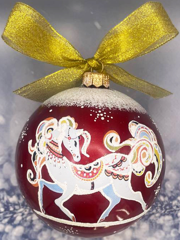 Двусторонний стеклянный елочный шар диаметром 85 мм. Одна сторона шара уже с нанесенным изображением новогодней тематики представленным на фото, другая сторона для Вашего пожелания (имени, поздравления).