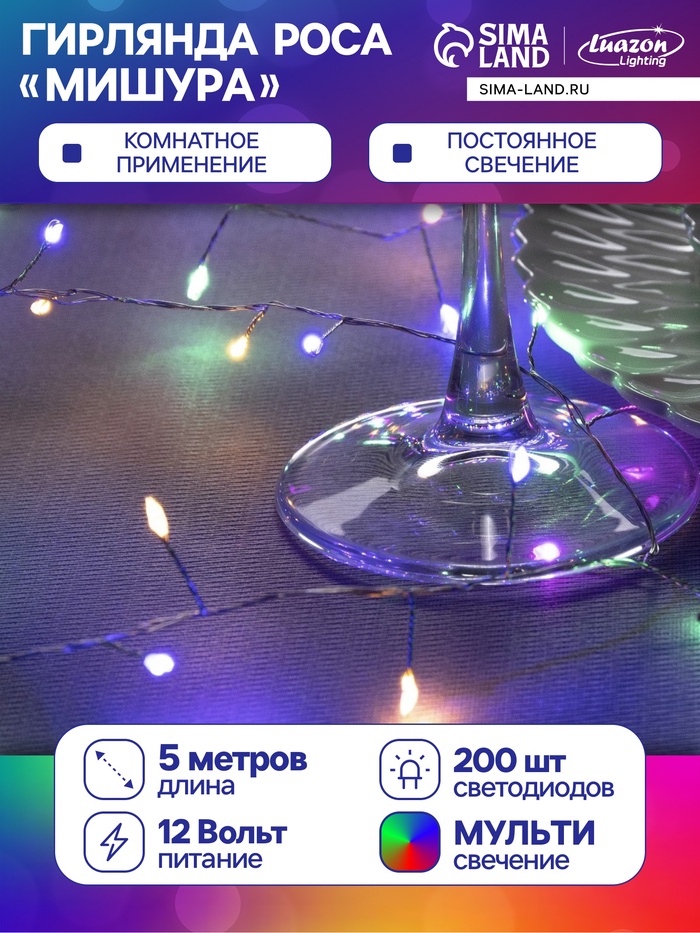 [Гирлянда представляет собой декоративную нить, от которой отходят короткие ответления с встроенными светодиодами на концах. Это создает эффект сверкающих точек света, придавая гирлянде объемный и праздничный вид.122][ROSA серия гирлянд Rosa предлагает элегантные и функциональные решения для декоративного освещения. Эти гирлянды, оснащенные микродиодами, обеспечивают надежную работу в различных условиях. Изолированная лаком проволка. Минидиоды в виде 122][IP 20. Устройство защищено от твердых объектов диаметром больше 12,5 мм и не защищено от проникновения воды.122][Цвет свечения: мульти, белый, тёплый белый. Цвет нити: серебристый122]Комплектация