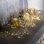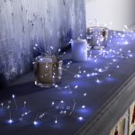 [Это тонкий невидимый провод с миниатюрными светодиодами лампочками, которые создают эффект мерцающих капель росы. Лампочки расположены на гибкой проволоке, что позволяет свободно формировать различные формы и украшать ими любые поверхности: окна, мебель, растения, элементы декора. Серия DECOR. Тонкая проволока с лаковой изоляцией. Микродиод в эпоксидной смоле122][IP 20. Устройство защищено от твердых объектов диаметром больше 12,5 мм и не защищено от проникновения воды.122][цвет свечения: мульти, белый, тёплый белый, синий, фиолетовый, жёлтый, зеленый, красный. Цвет нити: серебристый, медный, зеленый, черный.122]