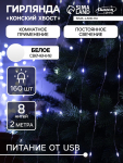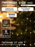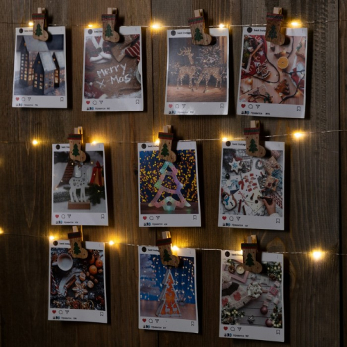 Гирлянда «Нить» 2 м роса с насадками «Прищепки-ёлки», IP20, серебристая нить, 20 LED, батарейки ААх2 (нет в комплекте), свечение тёплое белое