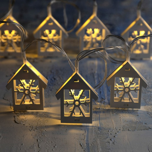 Гирлянда «Нить» 2 м с насадками «Белый фонарик», IP20, прозрачная нить, 10 LED, батарейки AAх2 (не в комплекте), свечение тёплое белое