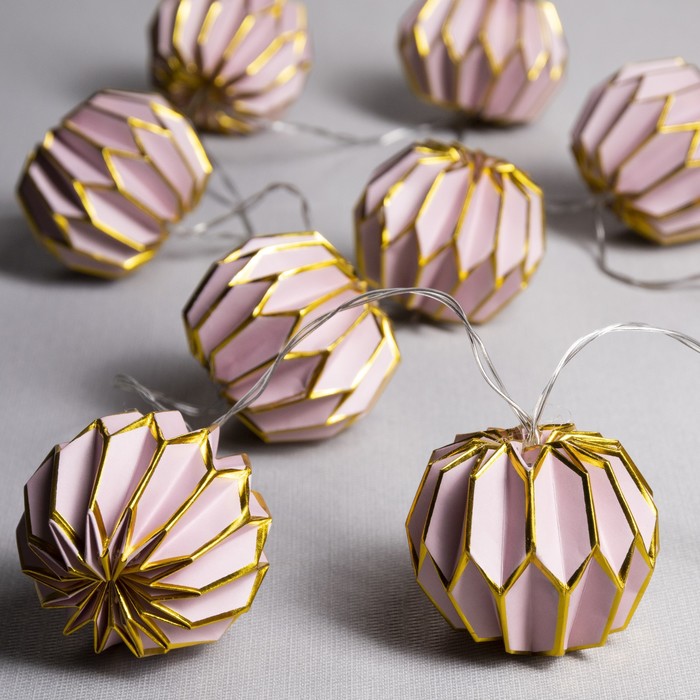 Гирлянда «Нить» 2 м с насадками «Розовый фонарик», IP20, прозрачная нить, 10 LED, батарейки AAх2 (нет в комплекте), свечение тёплое белое