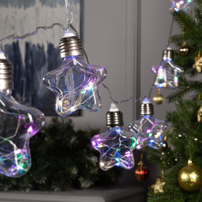 Гирлянда «Нить» 3 м с насадками «Лампочки звёздочки», IP20, прозрачная нить, 80 LED, свечение мульти, 8 режимов, 220 В