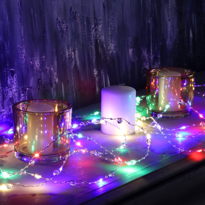 [Это тонкий невидимый провод с миниатюрными светодиодами лампочками, которые создают эффект мерцающих капель росы. Лампочки расположены на гибкой проволоке, что позволяет свободно формировать различные формы и украшать ими любые поверхности: окна, мебель, растения, элементы декора. Серия DECOR. Тонкая проволока с лаковой изоляцией. Микродиод в эпоксидной смоле122][IP 20. Устройство защищено от твердых объектов диаметром больше 12,5 мм и не защищено от проникновения воды.122][цвет свечения: мульти, белый, тёплый белый, синий, фиолетовый, жёлтый, зеленый, красный. Цвет нити: серебристый, медный, зеленый, черный.122]