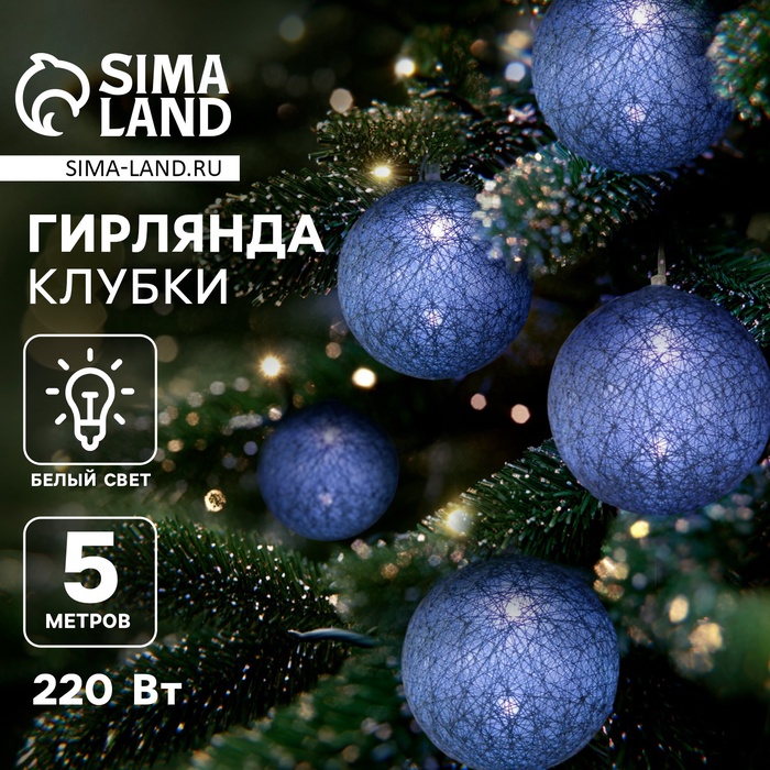 Гирлянда - нить, 5 м с насадками «Клубки серые», IP20, прозрачная нить, 20 LED, свечение белое, 220 В