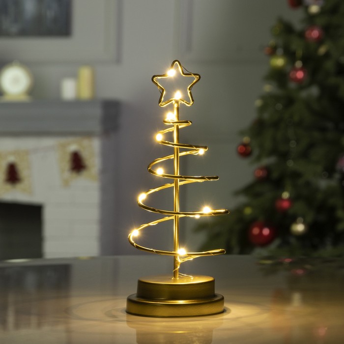 Светодиодная фигура «Ёлка золотистая» 12×25×12 см, металл, батарейки АААх3 (не в комплекте), свечение тёплое белое