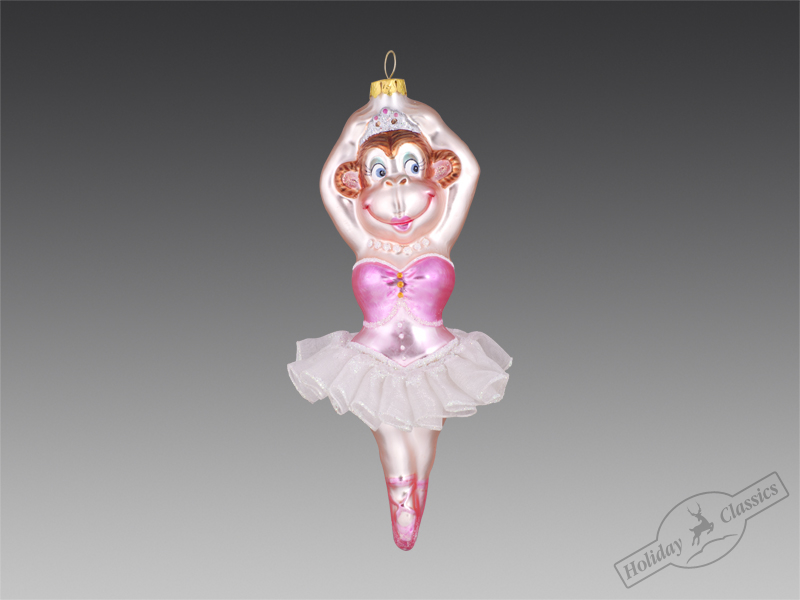 Мартышка-балерина в розовом платье (стекло) П/У, 8х7х16,5 см