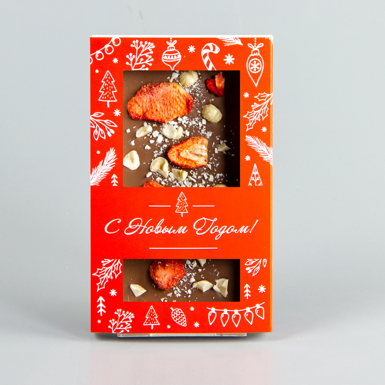 Молочный шоколад с клубникой и фундуком, красная коробочка #6