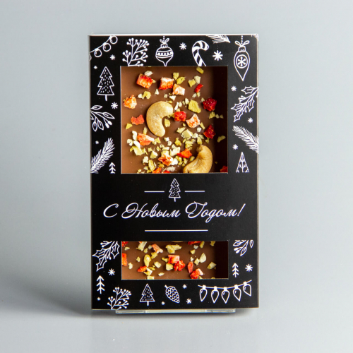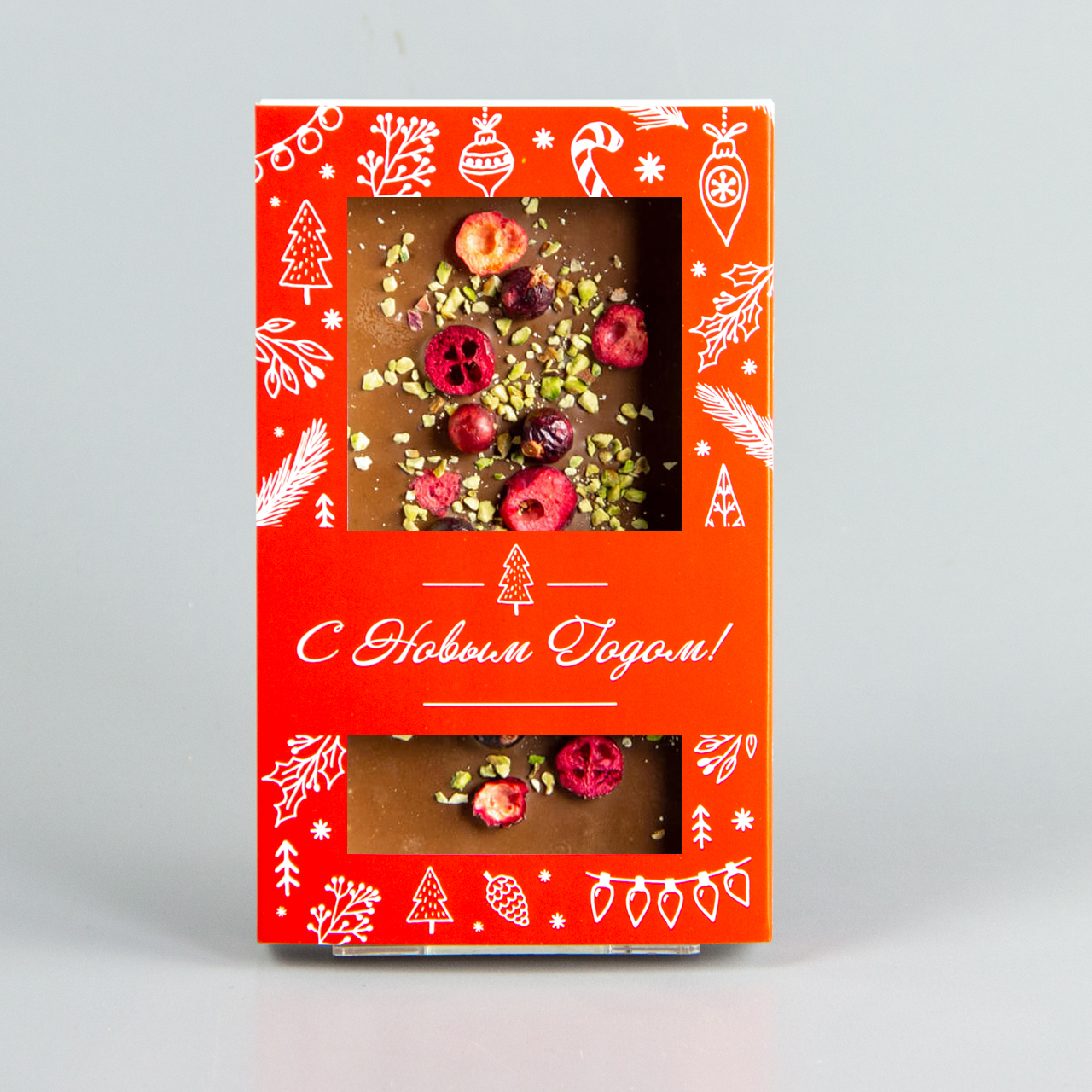 Молочный шоколад с клюквой, черной смородиной и фисташками, красная коробочка #7