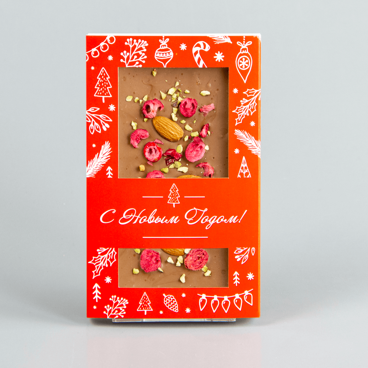 NEW! Молочный шоколад с клюквой, миндалём и фисташками, красная коробочка #19