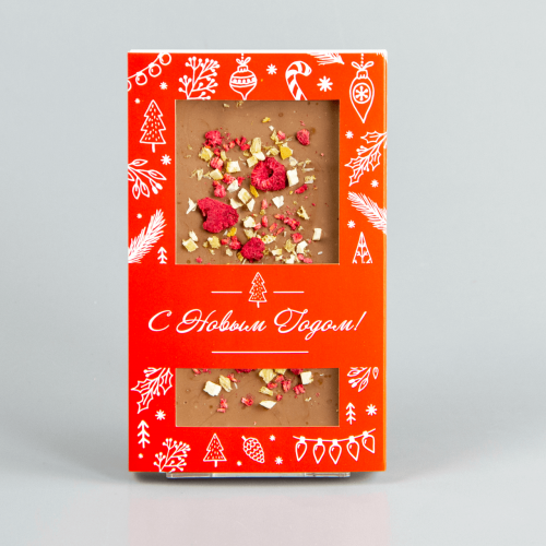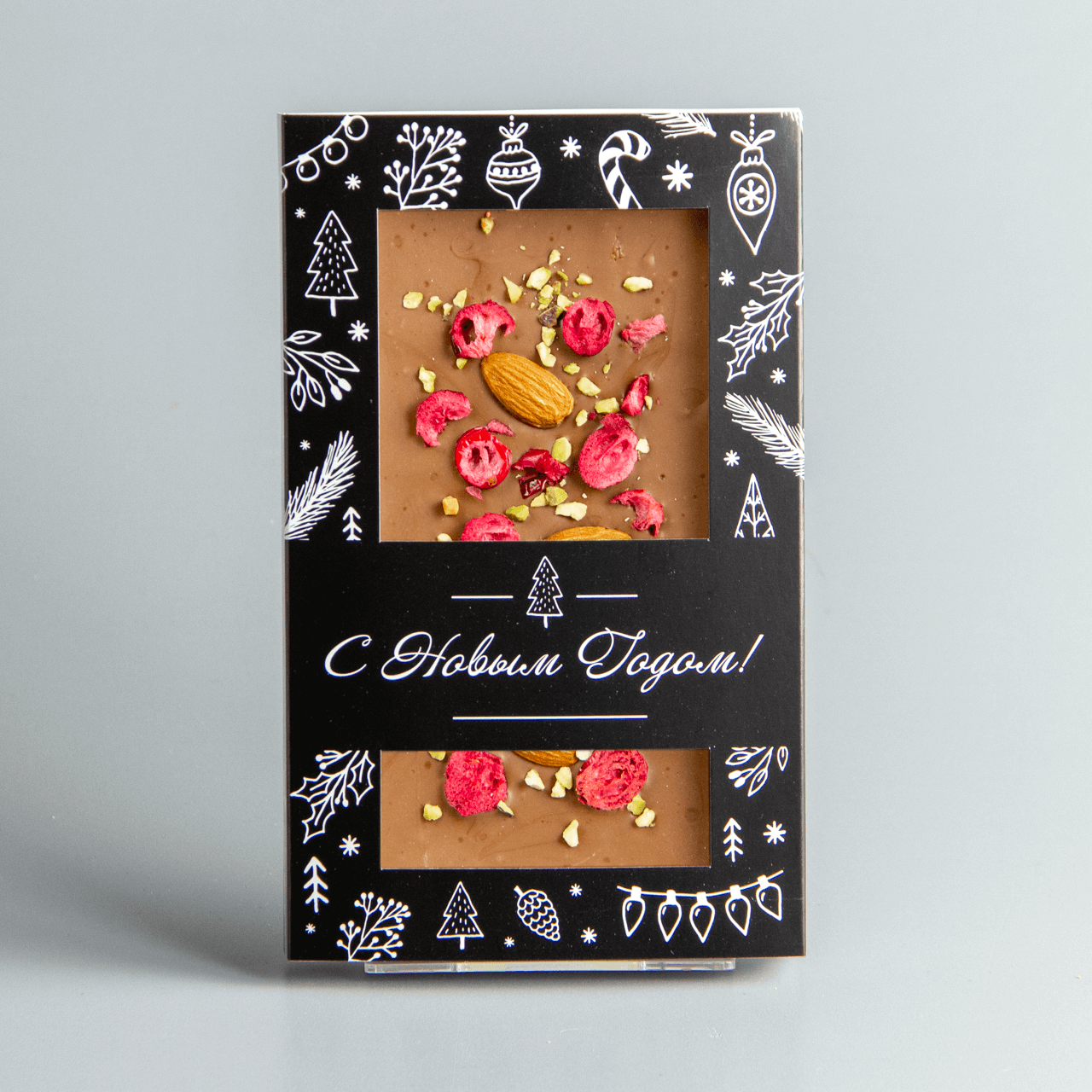 NEW! Молочный шоколад с клюквой, миндалём и фисташками, новогодняя коробочка #19