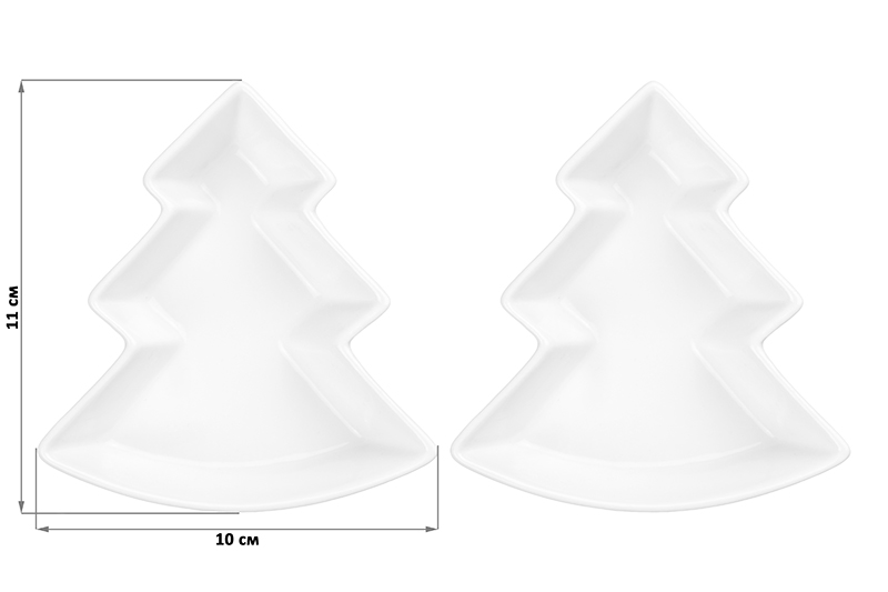 Набор состоит из 2-х сервировочных блюд серии "Елочки" объемом 85 мл каждое. Блюда подойдут для подачи к столу сыра, орешков, оливок, фруктов, закусок и сладостей. Можно использовать в роли соусников для подачи соусов, варенья, меда и других продуктов. Маленькие тарелки выполнены из высококачественного белого фарфора. Размер каждого изделия 11х10х3 см. Подойдут для горячего. Посуду можно использовать в микроволновой печи и посудомоечной машине. Поставляются в ярких картонных упаковках и смогут стать приятным подарком для ваших близких. Декоративные фарфоровые блюда в форме елочек украсят новогоднюю сервировку или станут настоящим украшением вашего дома на каждый день!