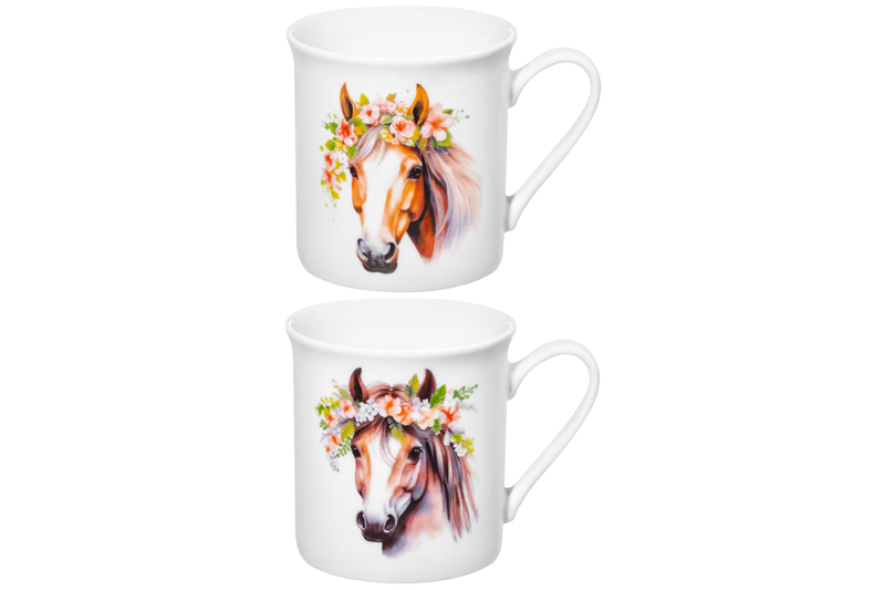 Набор 2 кружек 310 мл 11,5*8,5*9 см "Лошадь с цветочным венком", фарфор