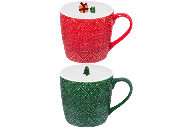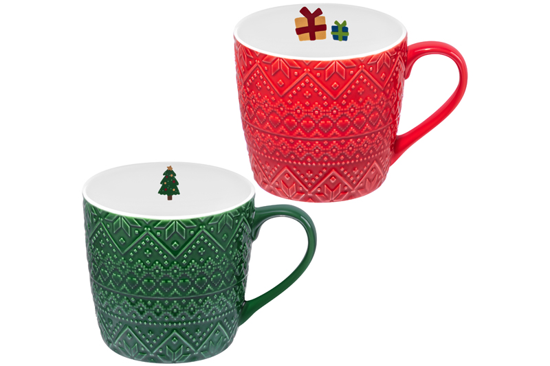 Набор 2 кружек 350 мл 12,5*9,5*9 см "Зимний узор", красный и зеленый, фарфор