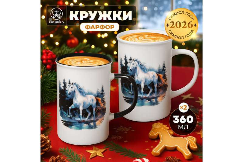 Набор 2 кружек от бренда Elan Gallery "Лошадь в осеннем лесу" выполнен из фарфора. Размер каждого изделия 11,5х7,5х11,5 см, объём – 360 мл. Дизайн вдохновлён грацией и красотой самого благородного животного на планете – белой лошади. Красочные образы на изображении приглашают в захватывающее приключение по просторам зелёных полей и дремучих лесов. Кружечки помогут провести множество приятных завтраков с капучино или латте, а также уютных чайных вечеров с любимым горячим напитком. Бокалы с красочными рисунками в данном наборе отличаются по дизайну: один полностью белый, а второй окрашен чёрным внутри и на ручке. Подходят ценителям чая и кофе, которые любят пить из красивой посуды. Фарфоровое изделие с ярким принтом отлично подойдёт как для молока, так свежевыжатого сока и морса. Гладкие фарфоровые стеночки в отличие от керамических быстро отмываются и не впитывают цвет напитков. Кружки со стильным дизайном украсят интерьер кухни или столовой. Подойдут как женщине, так и мужчине для кофейных перерывов на работе в офисе. Можно использовать как парные. Не рекомендуется применять абразивные моющие средства. Подходят для микроволновой печи и посудомоечной машины. Набор поставляется в стильной картонной коробке. Благодаря красочной коробочке вам не понадобится дополнительная подарочная упаковка. Станет приятным подарком на праздник. Подарите фарфоровую кружку близким или коллеге, чтобы выразить свои тёплые чувства. Особенно понравится любителям лошадок, а также ценителям эстетичных и оригинальных вещей. В коллекции бренда Элан Галерея представлено много кухонного инвентаря, сувениров и товаров для дома, в том числе бокалов и красивых чашек. Сделайте перерыв на мечты и насладитесь любимыми напитками из кружек с ярким дизайном!