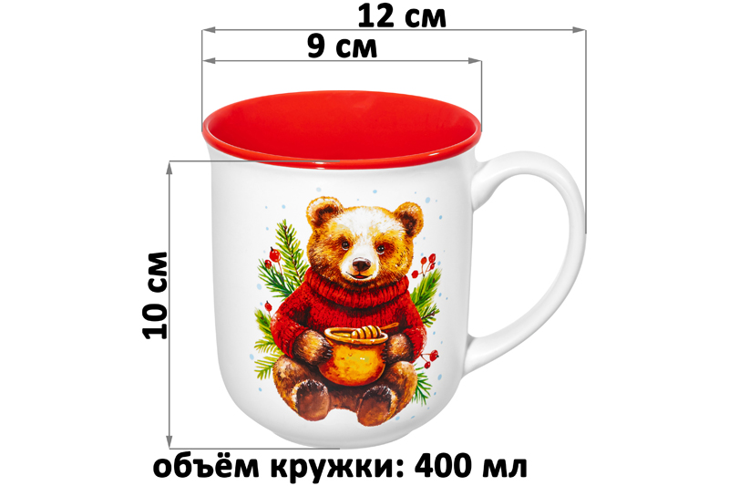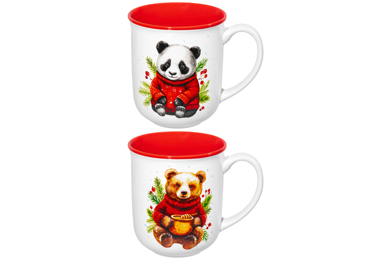 Набор 2 кружек 400 мл 12*9*10 см "Панда и Мишка", фарфор