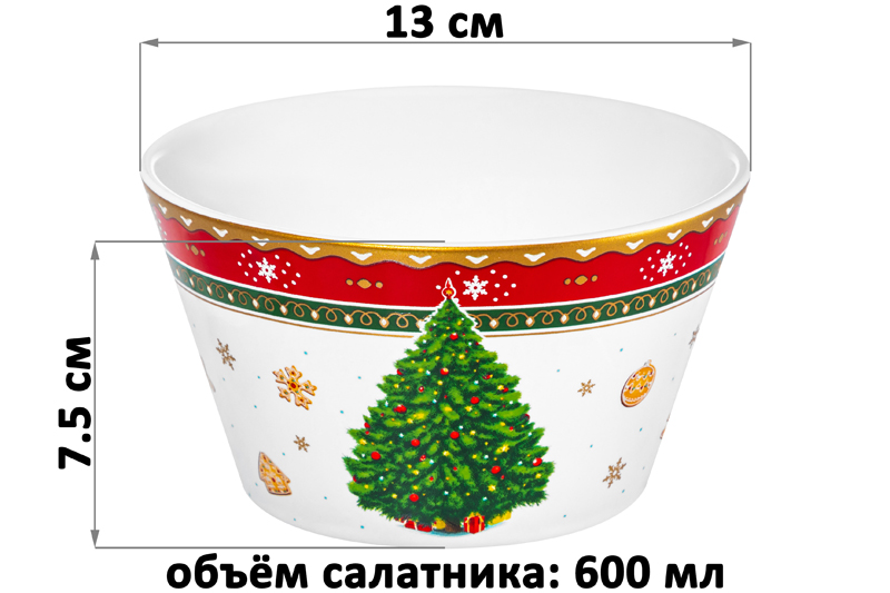Набор 2 салатников Elan Gallery "Новогодняя ёлка" выполнен из фарфора нового поколения new bone china, сочетающего в себе изящность и высокую прочность. От классического костяного фарфора new bone china отличается большей экологичностью в производстве. Размер каждого блюда – 13x13x7,5 см, объём – 600 мл. Можно использовать в роли суповых тарелок, а также для порций каши или плова. Дизайнерская коллекция посуды от бренда Elan Gallery украшена изображением пушистой ёлочки и узором из имбирных пряников и снежинок. Она создаст в вашем доме атмосферу волшебства и подарит праздничное настроение. Салатницы круглой формы займут отличное место в вашей коллекции фарфоровой посуды. Используйте тарелки для любых закусок и угощения гостей на празднике или вечеринке. Подойдут не только для салатов, можно использовать для сервировки любых сладостей, например, конфет или печенья. Положите в фарфоровую ёмкость фрукты или овощи, чтобы порадовать гостей. Благодаря глубокой форме миску можно использовать под любые гарниры. Кухонный инвентарь станет незаменимым помощником при сервировке стола и предметом декора вашего дома. Не рекомендуется применять абразивные моющие средства. Чаша подходит для использования в микроволновой печи и посудомоечной машине. Поставляется в стильной картонной упаковке. Подарочное фарфоровое блюдо порадует ваших близких на любой праздник. Благодаря яркой коробочке вам не нужно искать дополнительную подарочную упаковку. В серии вы найдёте все необходимое, чтобы встретить Новый год и Рождество в тёплом семейном кругу. В коллекции бренда Элан Галерея можно найти много красивого кухонного и столового инвентаря, а также собрать сервиз на свой вкус.