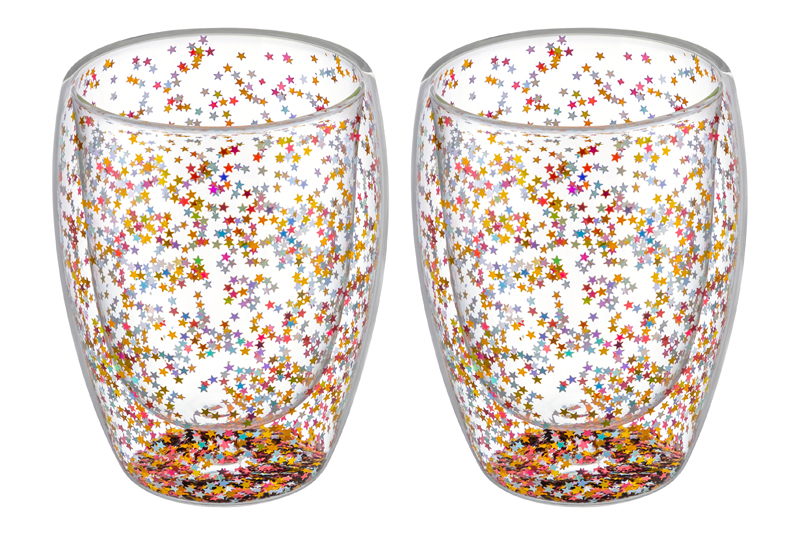 Набор 2 стаканов 350 мл 9*9*11,5 см "Crystal glass" с двойными стенками и декором из глиттера