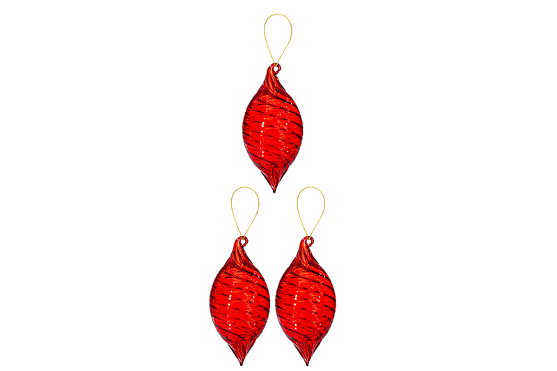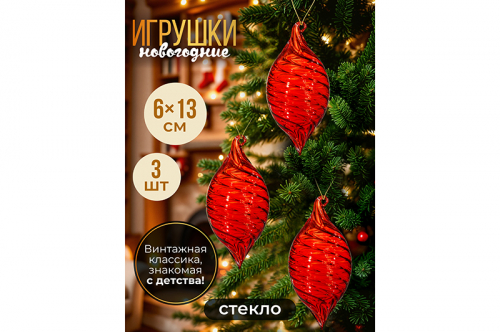 Набор 3 стеклянных новогодних игрушек 6,5*13,7 см "Капля", красный