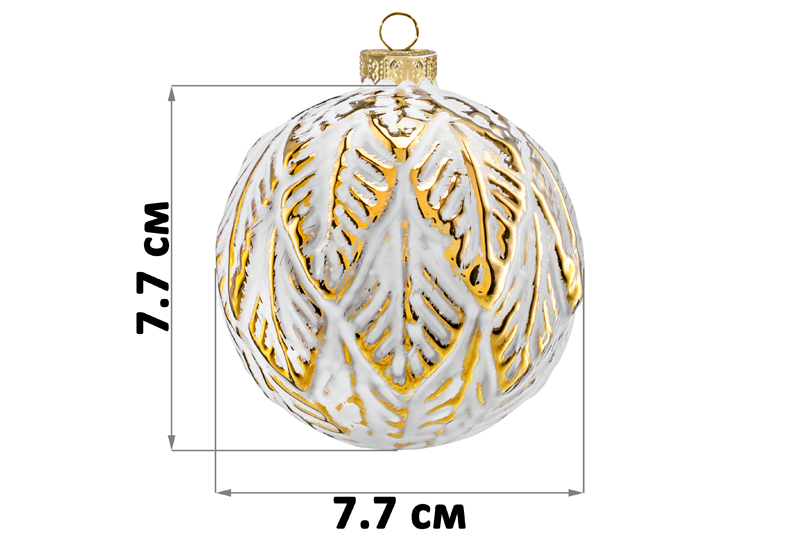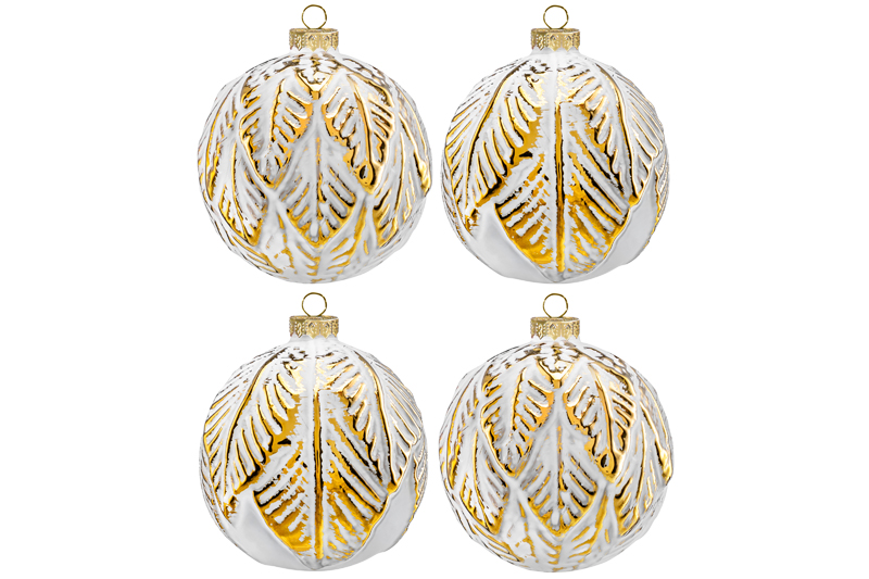 Набор 4 стеклянных новогодних шаров на елку 7,7*7,7 см белый, золотые листики