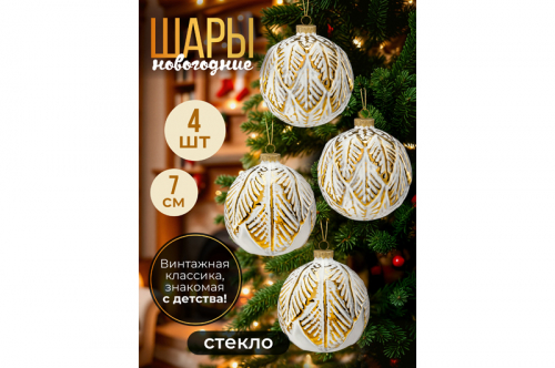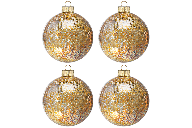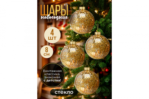 Набор 4 стеклянных новогодних шаров на елку 8*8 см, золотая россыпь