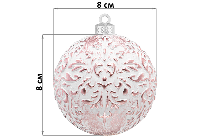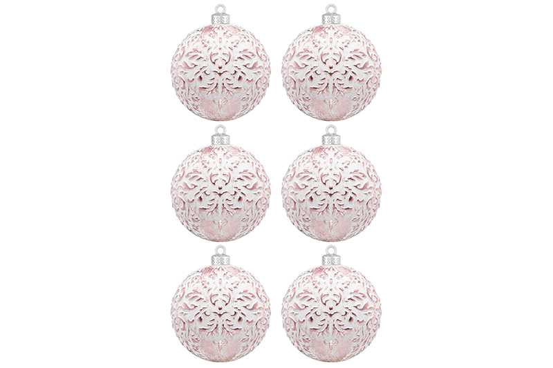 Набор 6 новогодних шаров 8*8 см "Белый с розовым" с эффектом старины