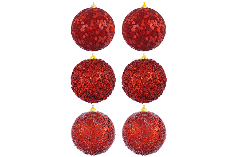 Набор 6 новогодних шаров 8*8 см "Красный"