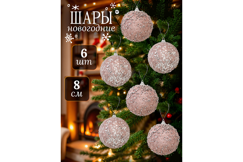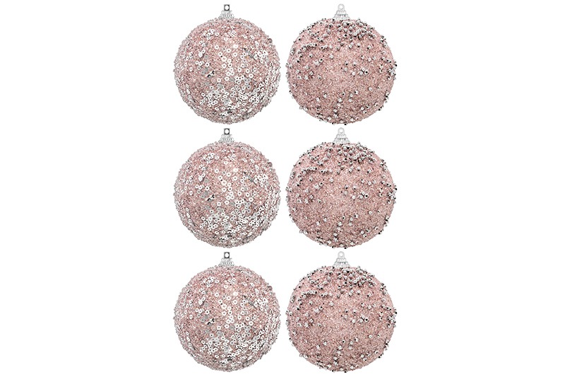 Набор 6 новогодних шаров 8*8 см "Розовый с серебром"